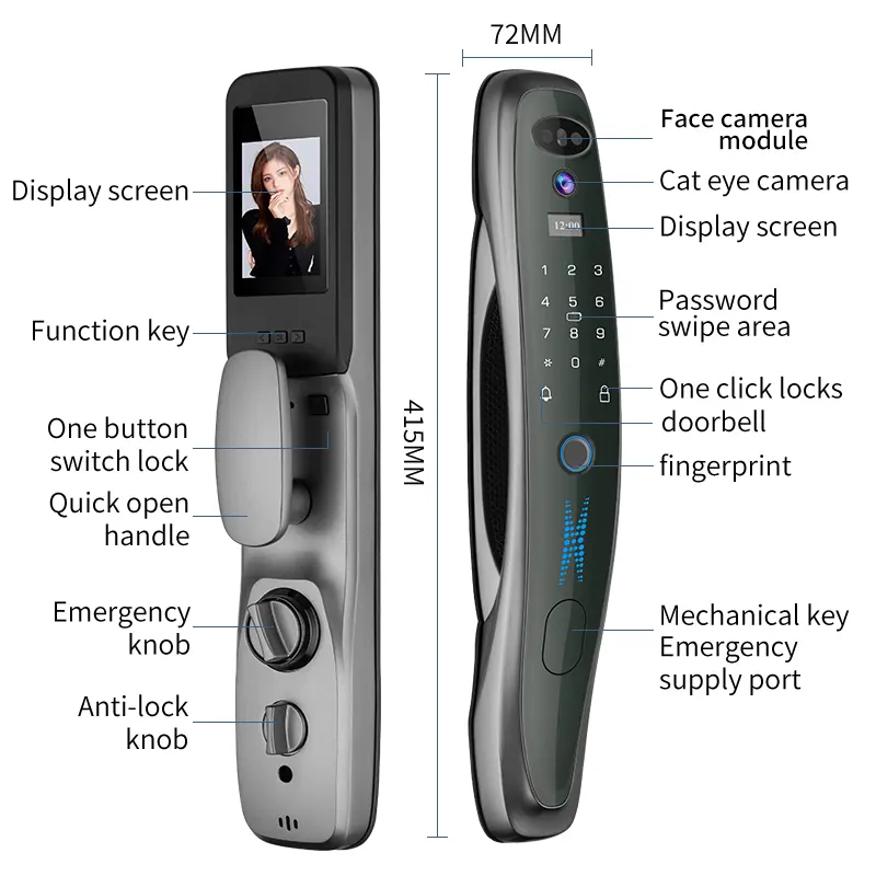 - Ujjlenyomat-felismerés: A nagy pontosságú érzékelő gyors, hamisítás elleni felismerést biztosít az otthon biztonságának védelme érdekében.